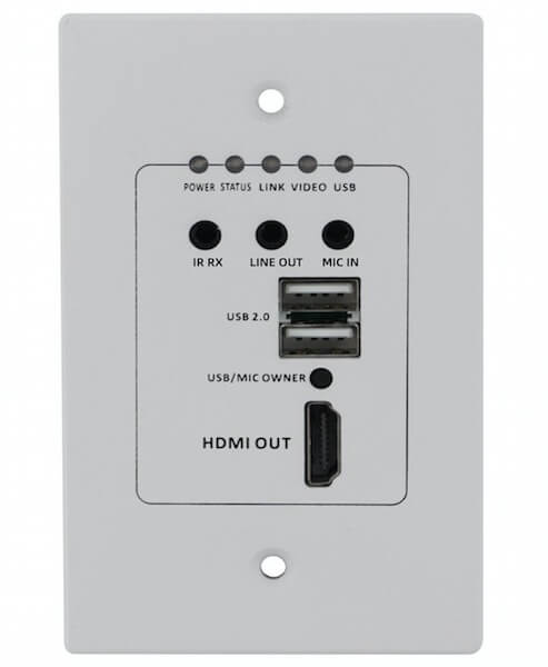 Es un transmisor de placa de pared 4K HDMI+IR+USB2.0. También es compatible con la transmisión HDMI o USB 2.0 únicamente, por lo que se puede utilizar como extensor USB 2.0 a través de CAT. La resolución HDMI puede ser de hasta 4k a 30 Hz y la distancia puede ser de hasta 150 m a través de un solo Cat6, también es compatible con thePOC (alimentación por cable), de modo que los usuarios solo pueden encender en cualquier lado con la alimentación.
