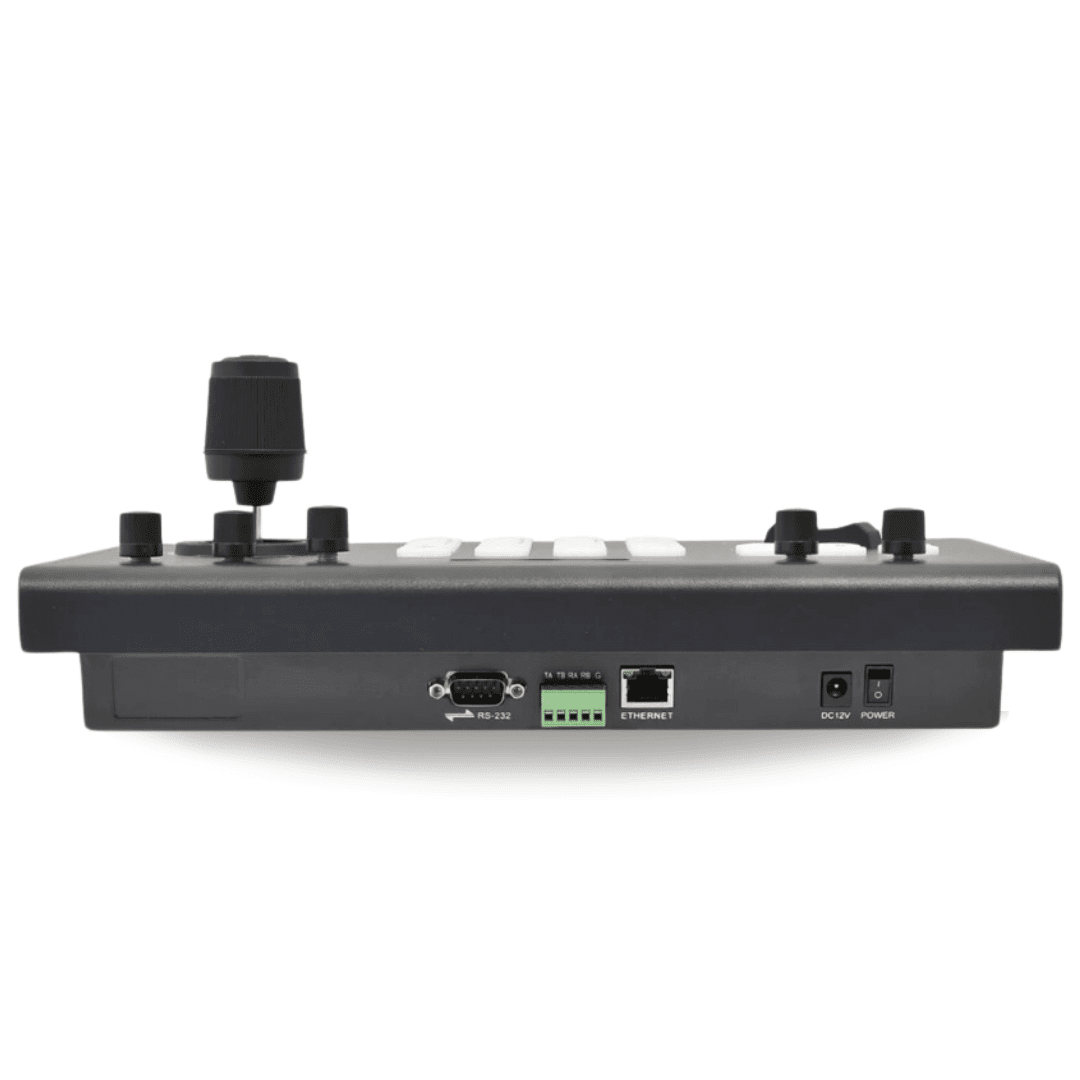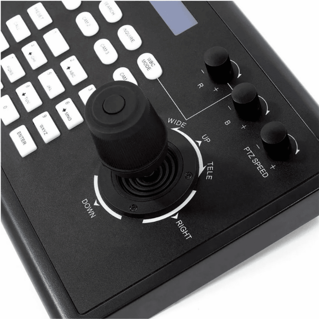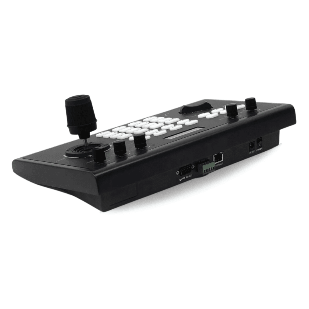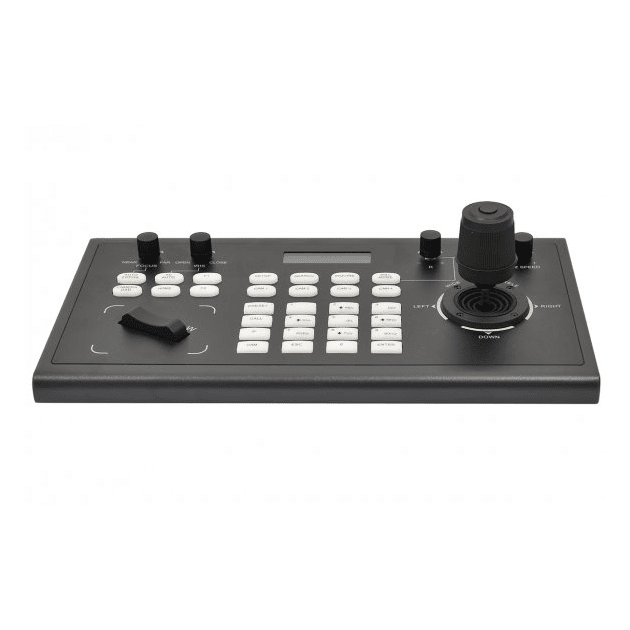 El KBD2000 es un joystick controlador de cámara PTZ de red (basado en IP) compatible con muchas protocolos de codificación de cámaras PTZ. El equipo soporta los protocolos ONVIF, VISCA, PELCO-D/P, etc, todo integrado en un chasis de alta calidad que ofrece un display LCD de control, una cómoda botonera de acceso a funciones y control de palanca de precisión que permite el ajuste de movimientos y trayectorias con velocidades variables.